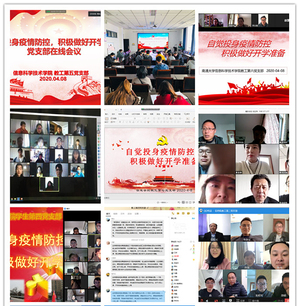 教工第一党支部全体党员共同观看了由公司自制视频《这里是中国》,并结合工作实际,介绍了开学准备的相关工作。教工第二党支部徐晨教授分享了防疫期间社区做志愿者的亲身经历,邓洪海博士分享了其妻子作为南通市疾控中心的工作人员参与疫情防控的感人事迹。其他教工党支部围绕疫情防控、线上教学准备与实施、线上教学经验分享等话题进行交流,并共同探讨了开学后拟采用的教学模式与工作计划,确保线上线下教学无缝对接。