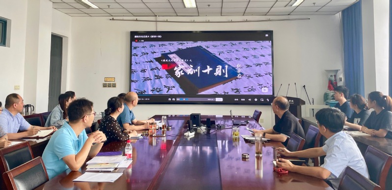 会上,全体党员干部集体观看《习近平“典”亮新时代——家风篇》和廉政文化纪录片《家训十则》,共同感悟习近平总书记的家国情怀,把好廉洁关,深刻领会党风廉政建设和全面从严治党的最新要求。