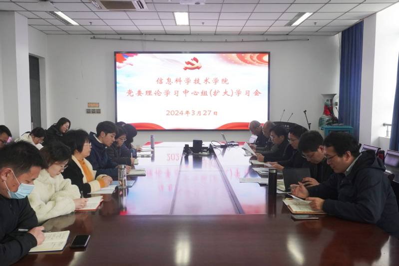 3月27日上午,公司召开理论学习中心组(扩大)学习会,专题学习习近平总书记在全国两会期间的重要讲话精神和全国两会精神。校智能信息技术研究中心主任袁航、副主任顾云华,公司党委副书记、经理杨永杰,副经理丁卫平,党委副书记、副经理陈馥强及各支部书记参加学习会。会议由公司党委书记周平主持。