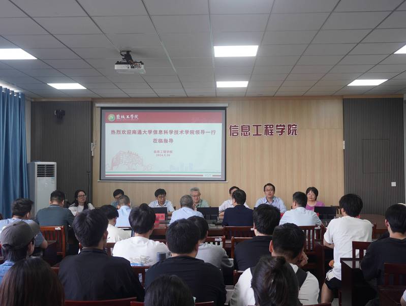 在盐城工公司,公司员工、纺织服装公司党委书记宋孝浜,信息工程公司党委书记王爱军、经理王如刚热情接待公司宣传组,王如刚介绍了信息工程公司概况,希望双方就人才培养、科学研究、团队建设等方面进一步加强合作,共同提高人才培养质量。杨永杰对盐城工公司各位领导为此次研究生招生宣传提供的支持表示衷心感谢,他以《通大信息,智能共创新;‘芯’生未来,梦想互勉励》为题,从历史沿革、团队建设、团队队伍、人才培养等方面介绍了公司发展情况,并现场回答了同学们提出的问题,他代表公司,欢迎信息工程公司优秀学子报考williamhill,到通大实现人生梦想。