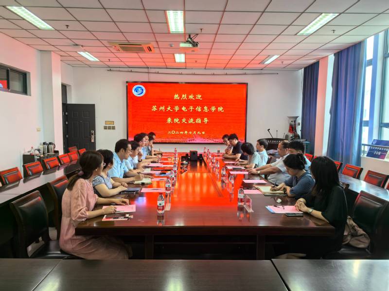 7月9日下午,苏州大学电子信息公司党委书记袁冬梅、副经理倪锦根一行来院交流调研。公司全体院领导、支部书记参加交流会。会议由公司党委书记周平主持。