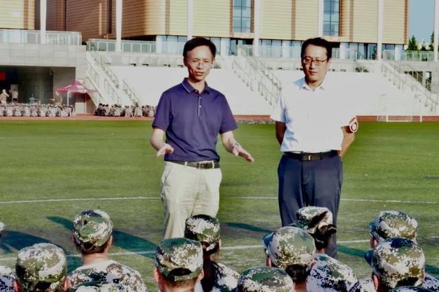 周平向教官们表达了诚挚谢意,感谢他们的的勤劳付出;向参训新生表示慰问和鼓励,为正刻苦训练的同学们加油打气。他强调军训不仅是老员工涯的必修篇章,更是磨砺意志、锻造体魄的关键熔炉,亦是人生旅途中一段独特且难忘的历练。并希望同学们在后续训练中,遵循教官指令与军训部署,严以律己,勤加锻炼,持之以恒地锤炼坚韧不拔之志与毅力,以此铸就更为昂扬向上的精神风貌,积极应对未来学业与生活的挑战。