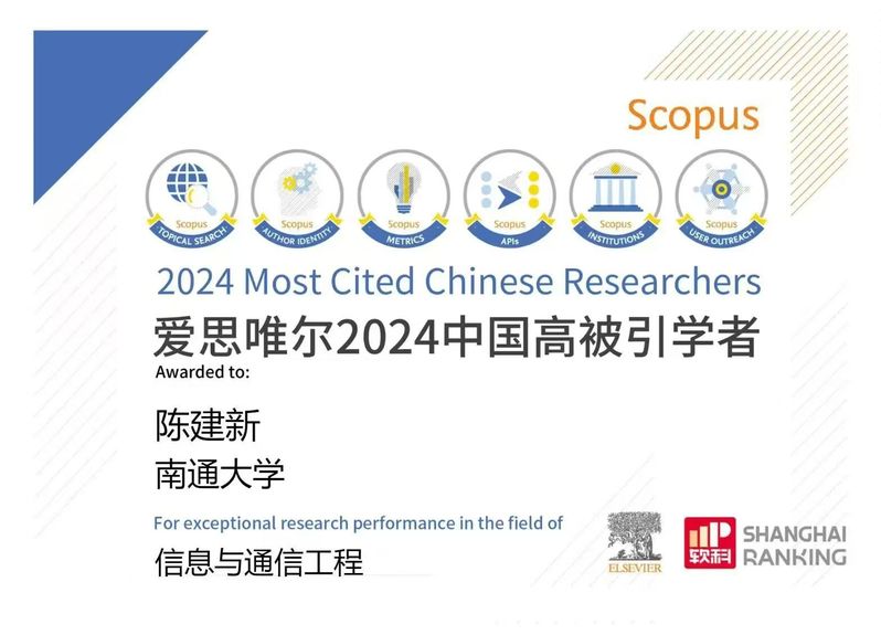 3月25日,爱思唯尔发布2024年度“中国高被引学者”榜单。公司陈建新教授位列其中。