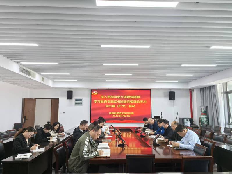 4月23日上午,公司党委举行深入贯彻中央八项规定精神学习教育专题读书班学习会。学院及智能信息技术研究中心班子成员、全体支部书记、系(室)负责人及科级以上党员干部参加学习会。公司党委书记周平主持会议。