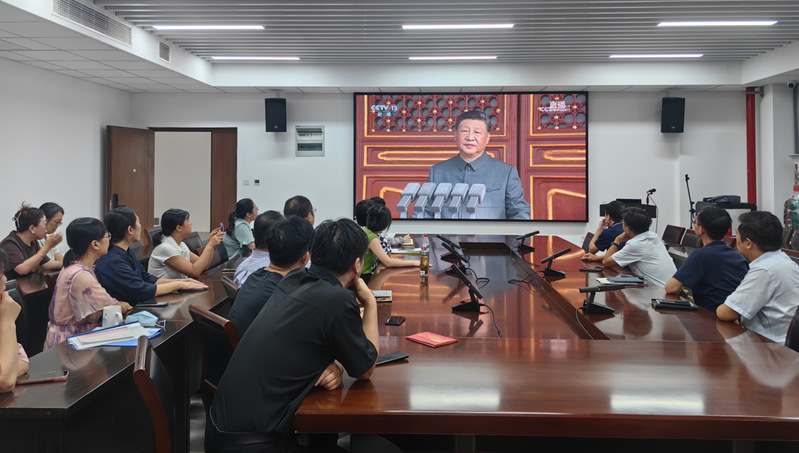 公司党委书记周平指出,习近平总书记的重要讲话立意高远、催人奋进,天安门广场的盛大阅兵气势恢宏,令人心潮澎湃。公司党委将组织全院教职工认真学习习近平总书记重要讲话精神,紧扣立德树人根本任务,教育引导广大师生从历史中汲取信仰力量,将伟大抗战精神和满腔爱国情怀转化为推动教育强国建设的强大动力,努力培养更多堪当民族复兴大任的时代新人,为建设特色鲜明的国内一流大学贡献力量。